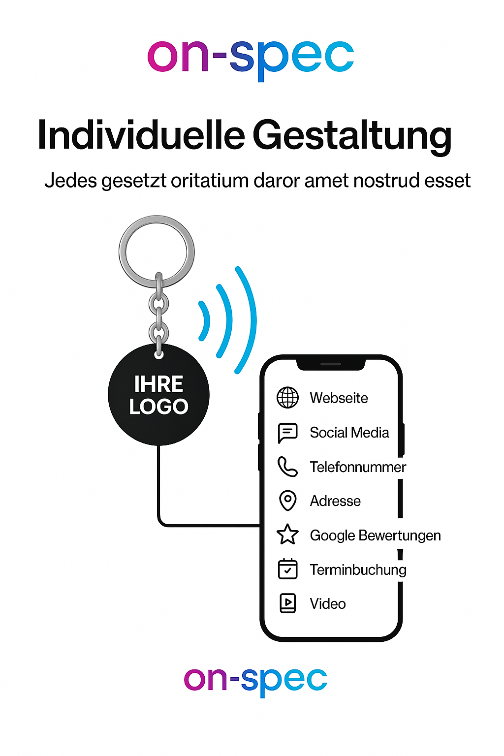 Wir gestalten maßgeschneiderte NFC-Schlüsselanhänger, Tischaufsteller und viele weitere NFC-Produkte, perfekt abgestimmt auf Ihr Unternehmen, Restaurant, Ihre Praxis oder Ihr Event.